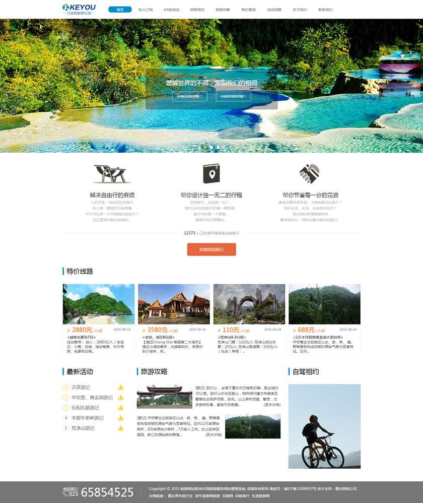 Project Description 6人游旅行网隶属于北京六人游国际旅行社有限公司。打造“为爱出行”:专为家庭,朋友,情侣间的旅行,提供私家小团精品游。打造高品质的旅行产品,解决传统跟团游和自由行存在的问题,将旅行服务做到臻善臻美。 Official website address 万宁http://www.keyoujq.com I want to share